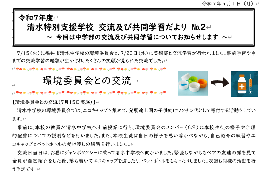 交流及び共同学習だより 【No.2】