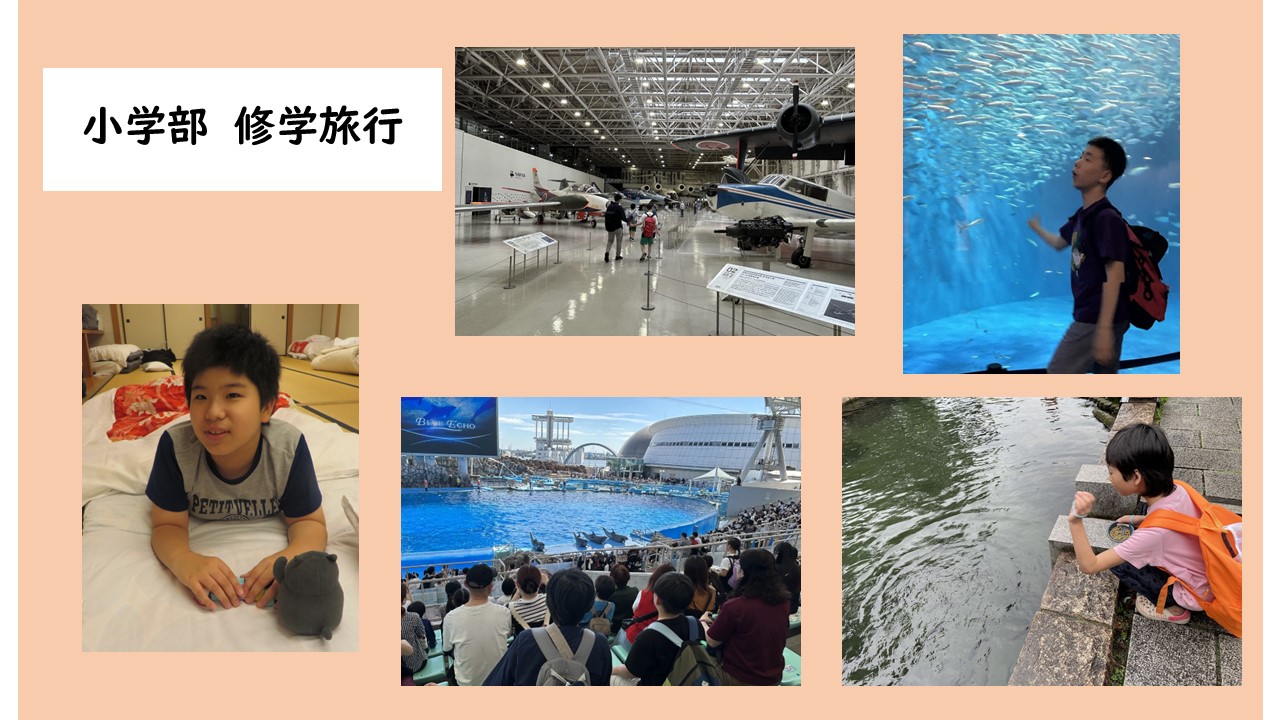 小学部は9月25日(木)26日(金)に岐阜県と愛知県に修学旅行に行きました。 かかみがはら航空宇宙博物館、オアシスパーク、名古屋港水族館に行き、いろいろなものを見たり聞いたり体験したりして充実した2日間になりました。